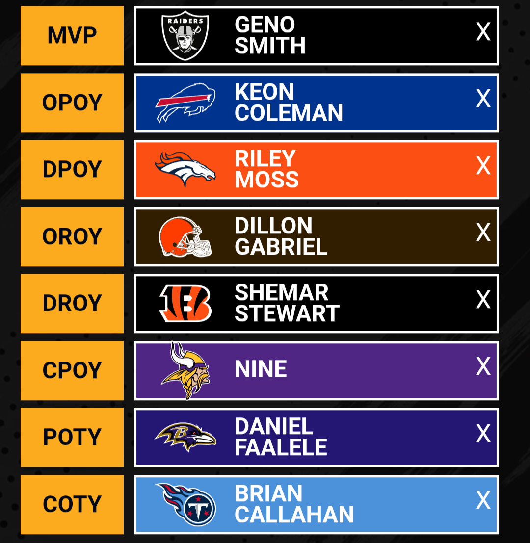 Congratulations to Jordan Reyes on the second place performance and taking Spread Eagles to the Championship game! The run was impressive and Jahmyr Gibbs made it all possible. However, you live by the sword and you die by the sword. Week 17 didn’t produce results for Spread Eagles outside of Josh Allen and Rhamondre Stevenson. The Rome Odunze trade fizzled out, Michael Pittman lost his QB, and Garrett Wilson just never made it back. James Conner, Calvin Ridley, and Travis Hunter - all drafted and onto IR early in the season. All of the injuries and still a 10-4 record and Reyes does it with the third least amount of waiver transactions in the league. That takes guts! And there is no shortage of confidence from this team.